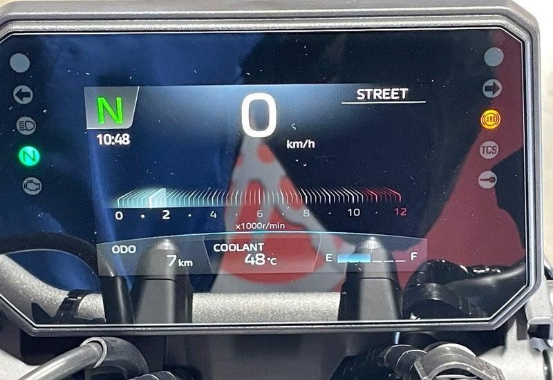 Electronic rider aids including traction control and three power modes (STREET, SPORT, CUSTOM)
